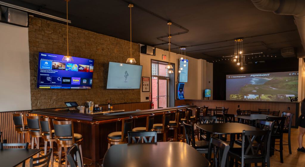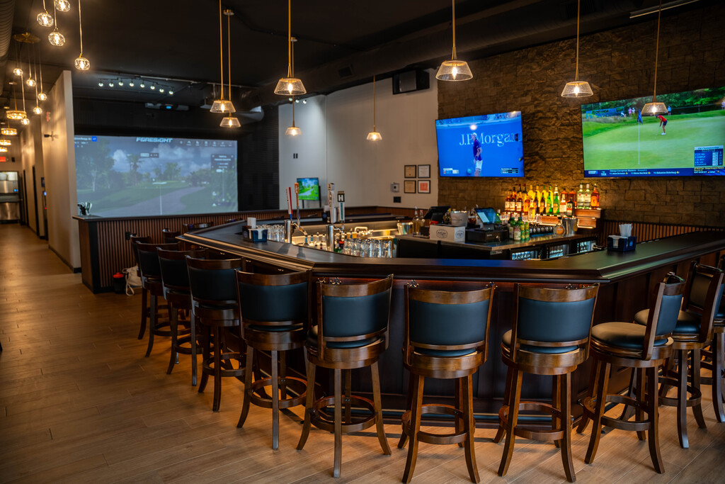 Sandbaggers features three simulator bays, including one designed for a private experience. Each bay features state-of-the-art Foresight technology, complete with premium Callaway golf clubs for both right- and left-handed players, along with top-quality balls.